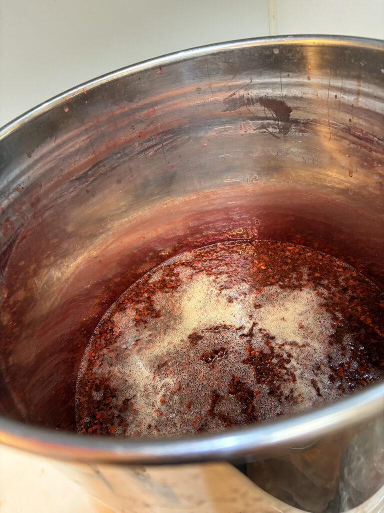 投稿日: 2025年10月2日2025年10月2日 投稿者: akanesomeまずは煮出すところから 茜染め用に染液を作った 植物の根っこから煮出す事で、こんな色が生まれるなんて 神様も粋な計らいをなさるものだ 茜を煮出している時は、とても良い香りが立ち込める なんとも言えない、落ち着いた気持ちになるのだよ 大好きな香り♪ 画像では香りが伝わらないのが残念。